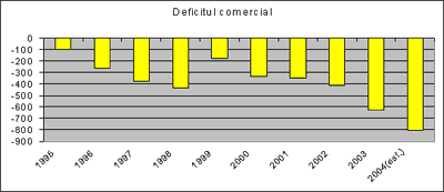 În ultimii doi ani deficitul comercial a crescut cu cca 30%. Experții economici împărtășesc opinia că nici în 2005 nu se așteaptă o relansare a balanței comerciale. Anterior ministrul Economiei Marian Lupu a declarat că în pofida faptului că în anul 2005 se prognozează o majorare cu 9% a exporturilor, deficitul balanței comerciale va crește pînă la 770 milioane USD?!