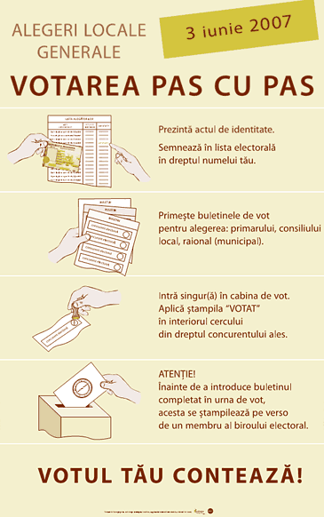 Spotul ilustrează procedura corectă de votare la alegerile locale generale din 3 iunie 2007.
