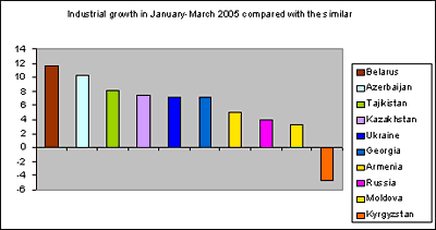 The industrial growth in the CIS was five percent on average, by four percent less compared with nine percent in the first quarter of 2004.