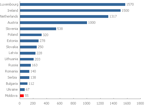 Minimum wage rate in Moldova is 30-fold lower than in Luxembourg…