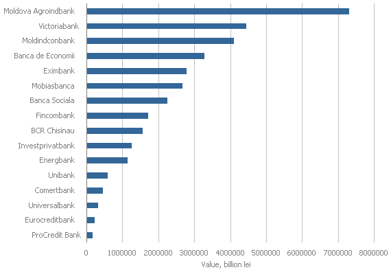 According to NBM accounts and media reports, overall assets of the domestic banking system were worth about 34 billion lei (over 3.2 billion dollars), as of March 31, 2008, or the equivalent to 76 percent of the 2007 GDP (4.23 billion dollars). The rise of deposits by population in commercial banks fuelled by massive remittances (they exceeded 1.2 billion dollars in eight months of 2007), as well as the general growth of people’s incomes increased the assets Diagram 2.
