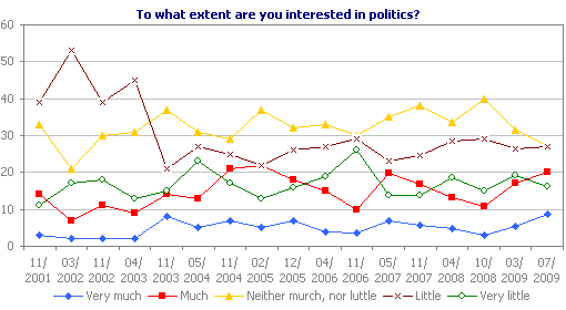 But this rise is on account of those who are interested neither much, nor little. In general, the percent of those who are interested little and very little in politics is almost constant. In this regard, it is worth noting that the percent of respondents who said they will participate in the July 29 early election is usual — approximately 80 percent.
