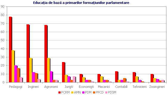 Tabelul 10 remarcă faptul că pentru toate formaţiunile politice este caracteristică, practic, aceeaşi proporţie de reprezentare după criteriul educaţional. Fluctuaţiile observate nu sînt în măsură să devalorizeze concluzia respectivă. Acesta poate fi efectul uniformizării ideologice din perioada preindependenţă, cînd şi-au edificat personalitatea mai bine de 90% din primarii aleşi.