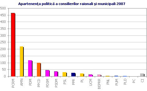 Rezultatele alegerilor locale din 3–17 iunie 2007 au avut un impact imediat asupra comportamentului principalilor formaţiuni politice. În acest sens, PCRM a fost prima formaţiune care, la plenara din 7 iulie 2007, a dat o apreciere rezultatelor alegerilor locale, stabilindu-şi priorităţile imediate în vederea pregătirii pentru alegerile parlamentare din 2009. Un obiectiv nevoalat, exprimat în mod expres de către Preşedintele Voronin a fost formulat în termeni de ameninţare la adresa raioanelor în care administraţia (preşedinţii raioanelor şi adjuncţii acestora) au fost aleşi din partea partidelor de opoziţie.