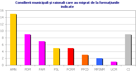 Oricum, proporţiile migraţiei politice printre consilieri nu trebuie să mire. Migraţia politică la nivel de consilieri raionali/municipali nu este decît un ecou la manevrele de coalizare, fuziune şi scindare a elitelor partinice la nivel central, de aceea, elitele centrale, de fapt, “culeg ceea ce seamănă”.