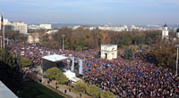 Potrivit organizatorilor, la eveniment au participat cîteva zeci de mii de oameni din toată republica. Acţiunea “Pentru Moldova! Pro Europa!” a culminat cu intonarea imnului Europei.
