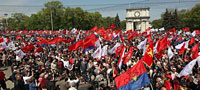 Participanţii la protest scandau lozincile: “Trăiăscă 1 Mai!”, “Trăiască Partidul Comuniştilor!”, “Trăiască Moldova liberă!”.