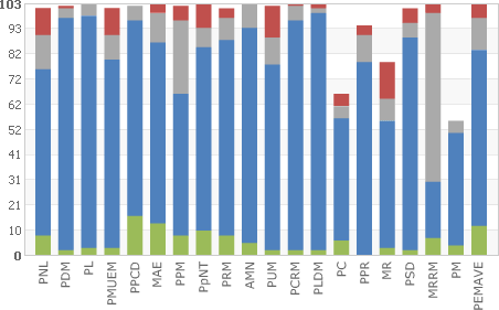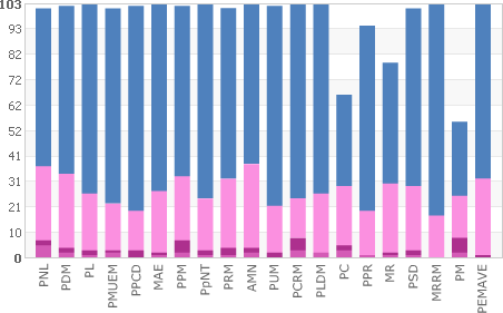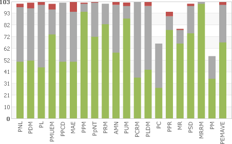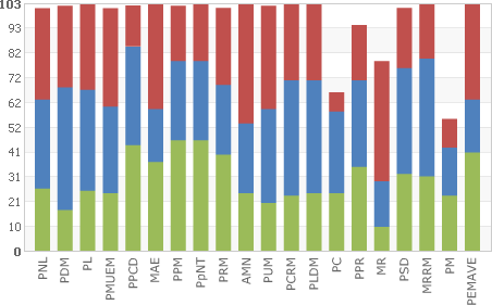 | Фигурирует в списках 2 и более партий | 3 | 5 | 3 | 5 | 0 | 9 | 1 | 1 | 0 | 3 | 3 | 0 | 4 | 0 | 4 | 1 | 2 | 0 | 0 | 3 | 47 2.44% | |